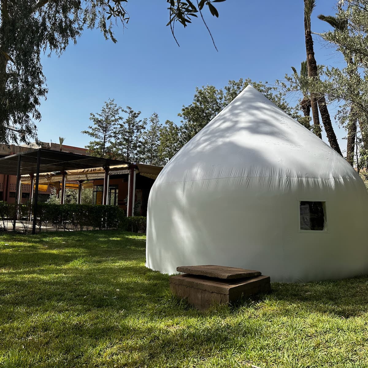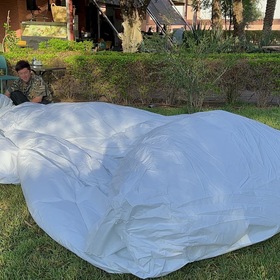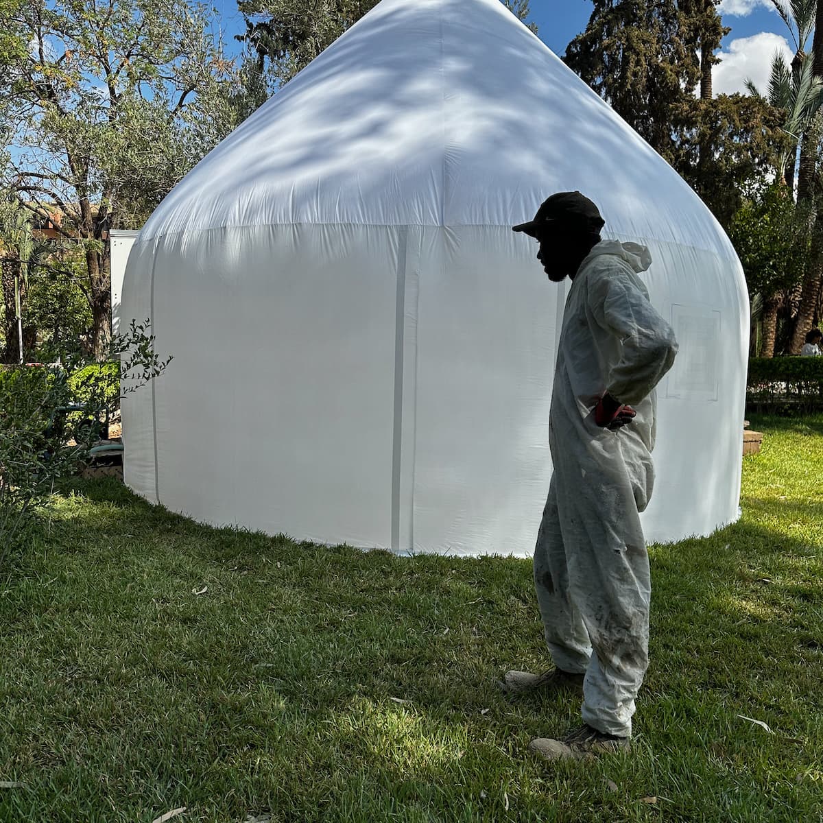 膜に空気を送って膨らませます。空気で自動的に大きくなります。